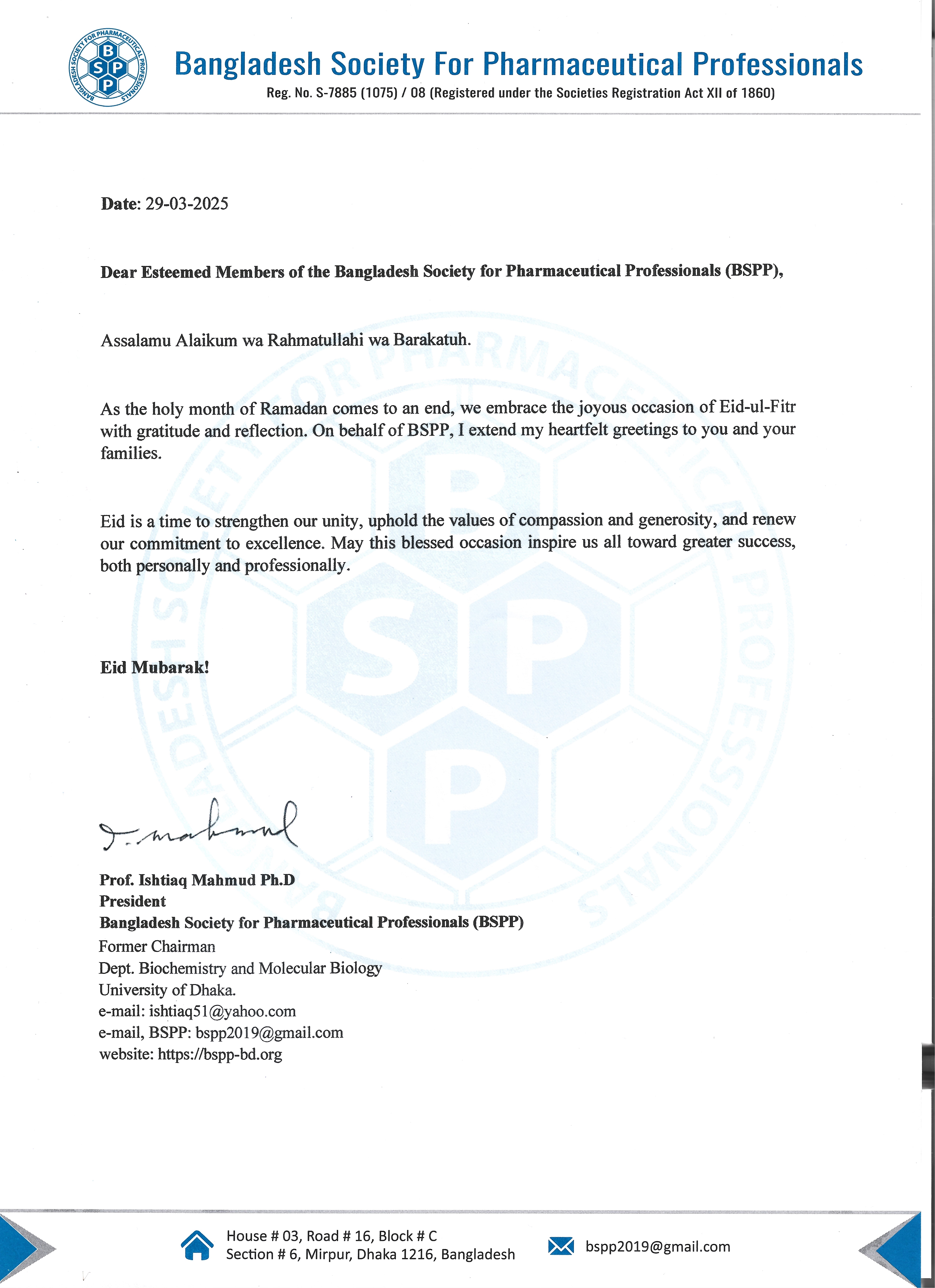 Dear Esteemed Members of the Bangladesh Society for Pharmaceutical Professionals (BSPP),